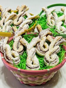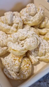 But bread is not the only tracitional thing you will find in Slovenia. Actually there are so many baked goods that it is hard to think which one should be the first to mention. But I think Strudel should be pretty high on the list, and also all the puff pastry goodies we make, simple coffee/tea cakes and of course we cannot forget about potica, which is in Slovenia often refferd to as queen. But not all the treats are always sweet. We also like those savory little bites that go well with our coffee and are often found on the celebration tables as well.