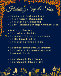 Join me at the Holiday Sip & Shop at the Merriam Community Center on Friday, November 14th, where I’ll be sharing some of my favorite festive treats — including my famous Cinnamon Star Bread and other seasonal specialties.